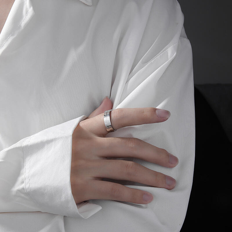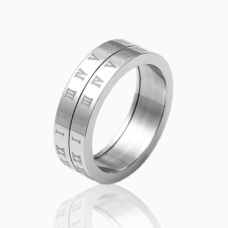 この洗練された男性用結婚指輪は、シンプルなストレートバンドデザインとミラーのような高光沢仕上げで、時代を超えた洗練さを放っています。控えめながら印象的なディテールは、精密に刻まれた2列のローマ数字で、伝統の趣と個人的な象徴性を加えています。巧みに組み込まれた回転機能が指輪に動きのある遊び心を与え、単なる誓いの証ではなく、動きと調和を映し出すインタラクティブなアイテムとなっています。
