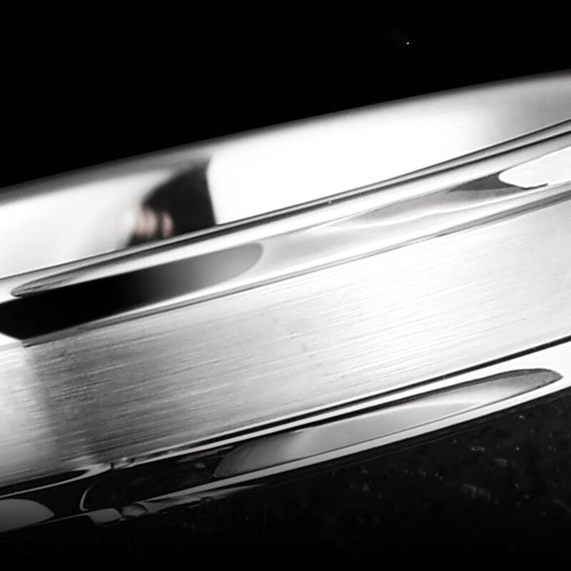 耐久性に優れた85%タングステンカーバイド製で、日常使用に耐えながら磨かれた美学を維持。低アレルギー素材が持続的な快適性を保証し、耐傷性によりブラッシュド仕上げを美しく保ちます。耐久性と優雅さの完璧な調和を実現したこのバンドは、生涯にわたって着用できるよう設計されています。