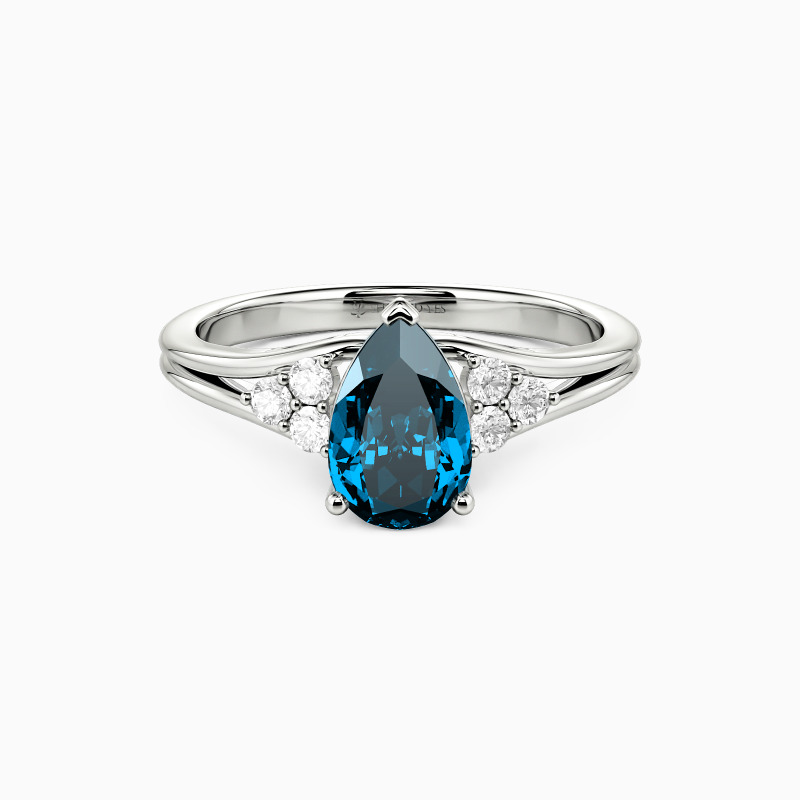この上品なサイドストーン付きエンゲージリングは、まばゆく輝くペアシェイプカットのメインストーンを中心に、周囲を囲むラウンドストーンがさらなる輝きを添えています。スプリットアームのデザインは、モダンな印象と繊細な左右対称の美しさを演出し、着け心地の良さと安定感も兼ね備えています。永遠のエレガンスと現代的な魅力を見事に融合させたこのリングは、ロマンティックな心を持つ方にぴったりの一本。唯一無二の愛を象徴する特別なデザインです。